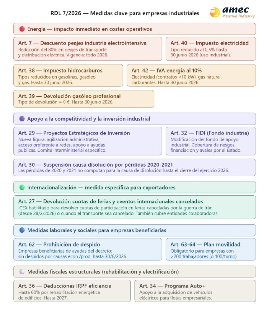 Royal Decree-Law 7/2026 approves the Comprehensive Crisis Response Plan for the Middle East, which includes various measures specifically designed to protect the competitiveness of Spanish industry, promote its decarbonization and mitigate the impact of the cancellation of trade fairs.